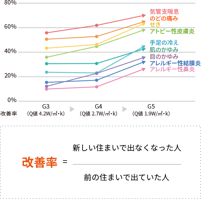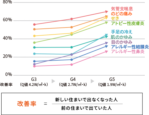 ■ 断熱グレード向上に伴う [疾病改善率]