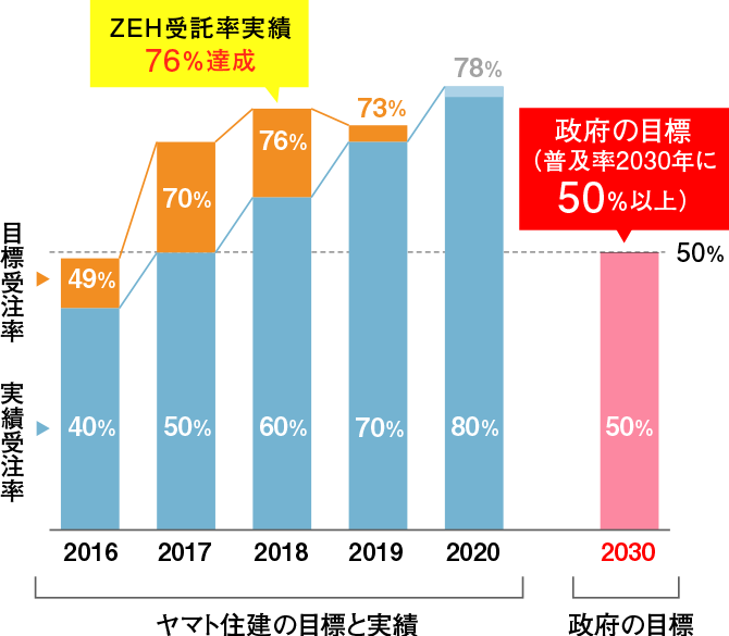 - ■ ZEH使用の住宅受託率76%達成