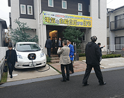 各地の住宅展示場では「V2H搭載住宅×電気自動車(EV)」による蓄電池活用のしくみを公開しています