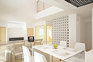 「エネージュUW」は、断熱性能にこだわりぬき、壁・屋根には外張り断熱と充填断熱を組み合わせた「内・外ダブル断熱」、床下の温度を一定に保つ「基礎断熱」、Low-Eトリプルガラスの「樹脂サッシ」を採用しています。断熱性能を示すUA値は、地域区分1地域(北海道)の省エネ基準を上回る『0.27(W/ ㎡・k)』を記録、寒冷地においても快適な断熱性能を実現しました。高い断熱性と気密性でエネルギー消費量を大幅に削減し、さらに太陽光発電などの創エネ設備を採用することより、エネルギー消費量をゼロ以下に抑えることが可能です。