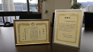 兵庫県緑化推進協会から感謝状をいただきました。