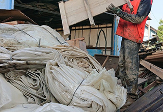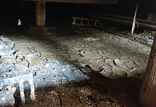 ボランティア活動 私たちの作業は、家の中に10センチ程滞留した土砂を掘り返して土のうに詰めて撤去していく作業でしたが、土砂は乾いて非常に硬くなっており、かなりの量で搬出も大変な重労働でした。 |