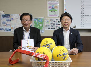 岡山市立鹿田小学校へ体育用品を寄贈いたしました。
