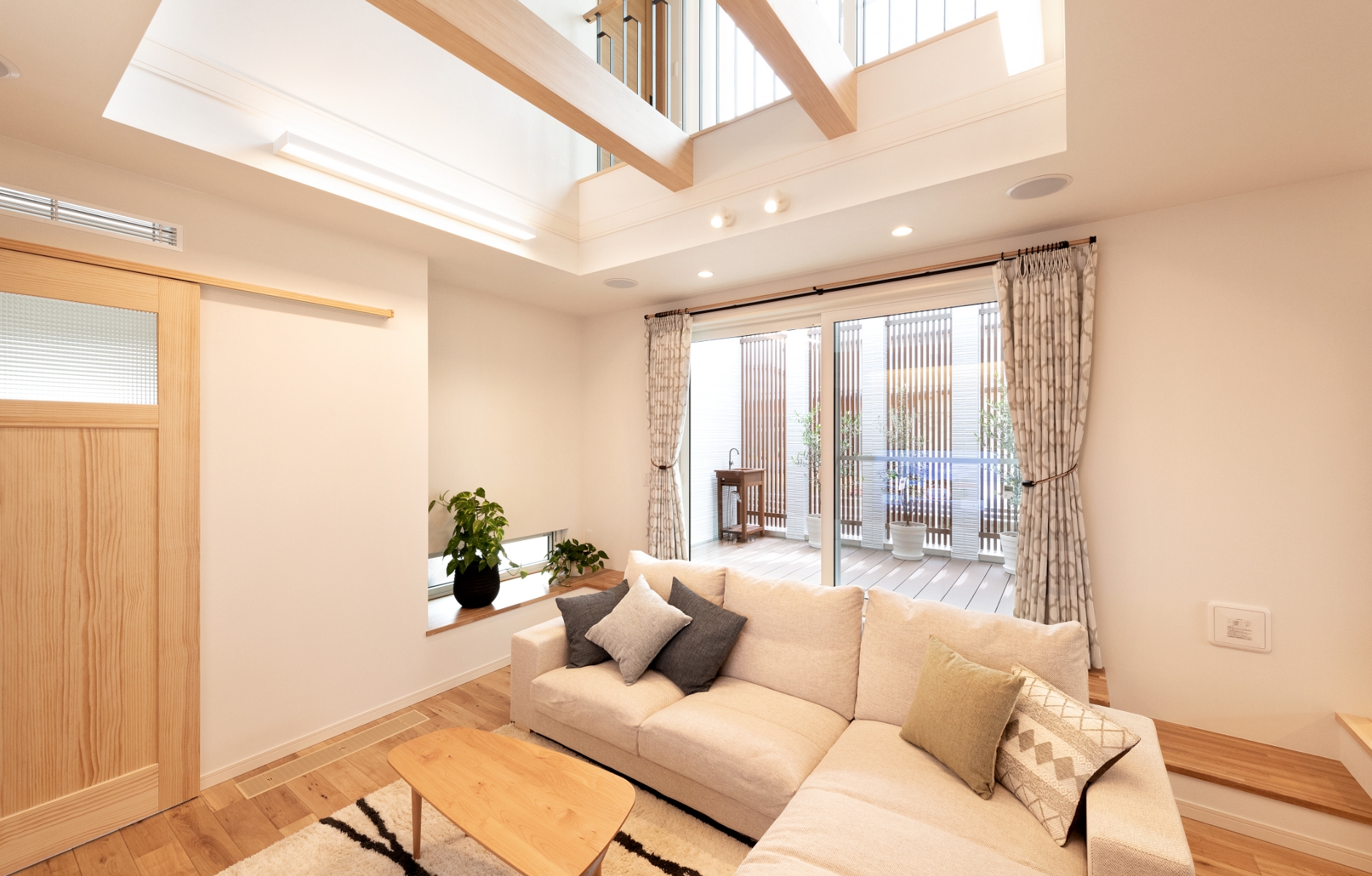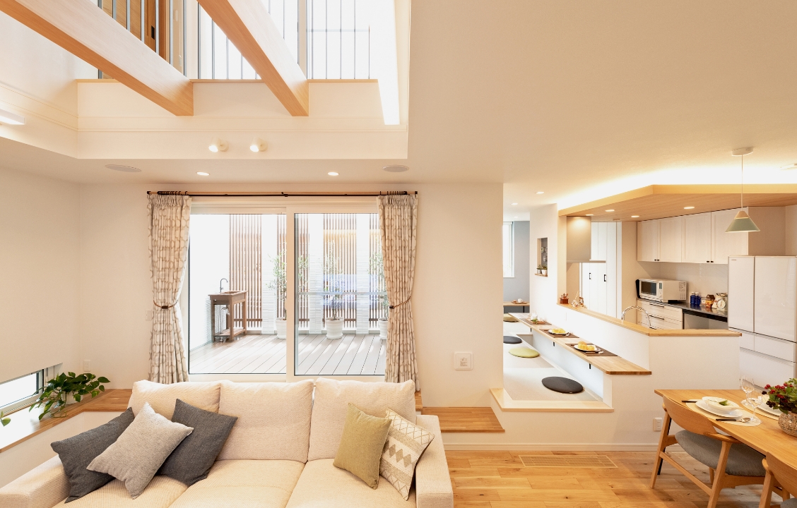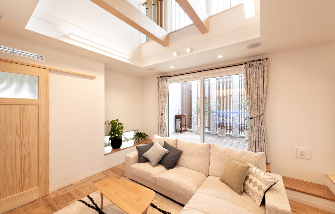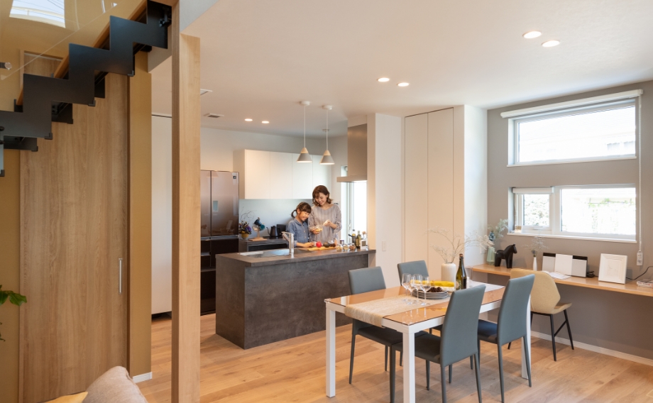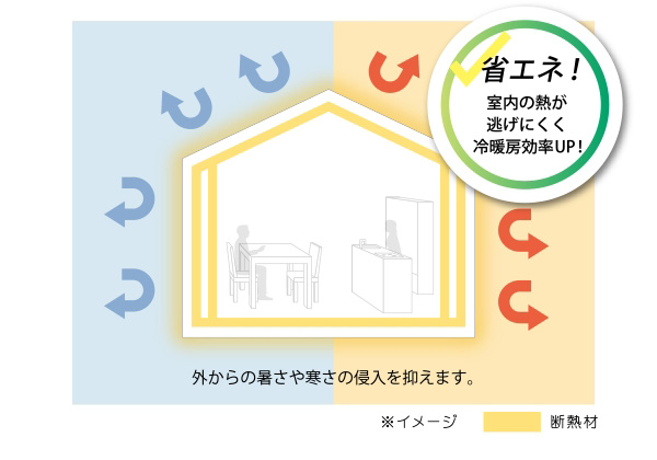 ZEH基準を超える厳しい断熱性能「HEAT20 G3グレード」をクリアし、さらに建物の隙間を極力なくした高い気密性能を備えています。優れた断熱性能と気密性能が組み合わさることで、夏は冷房で冷やした空気を、冬は暖房で暖めた空気をしっかりと室内に留め、しっかりキープ。少ない冷暖房の稼働で一年中快適にお過ごしいただけます。