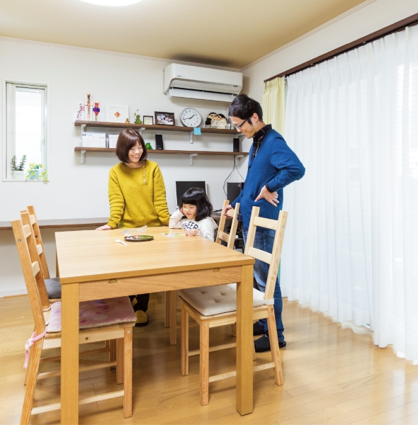 夏は涼しく、冬は暖かい家となりました。特に冬は、外の冷気が家の中にあまり入らず、ガラスの結露もすることなく、以前の家より過ごしやすくなりました。また、エアコンをあまり使わずにすんでいるので、光熱費を抑えることができています。