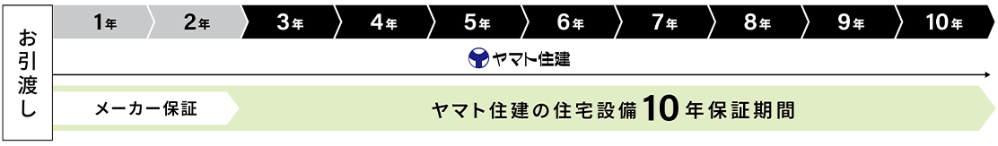 建物だけでなく設備機器にもメーカーが付与する保証を含めた10年保証を導入しております。