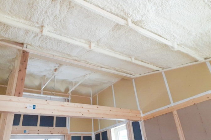 外張り断熱工法とは、建物を外側から断熱材で覆う工法です。建物を隙間なく断熱材で覆うため、構造体が外気の影響を受けにくくなります。高い断熱性能の結果、家の中の温度も安定します。