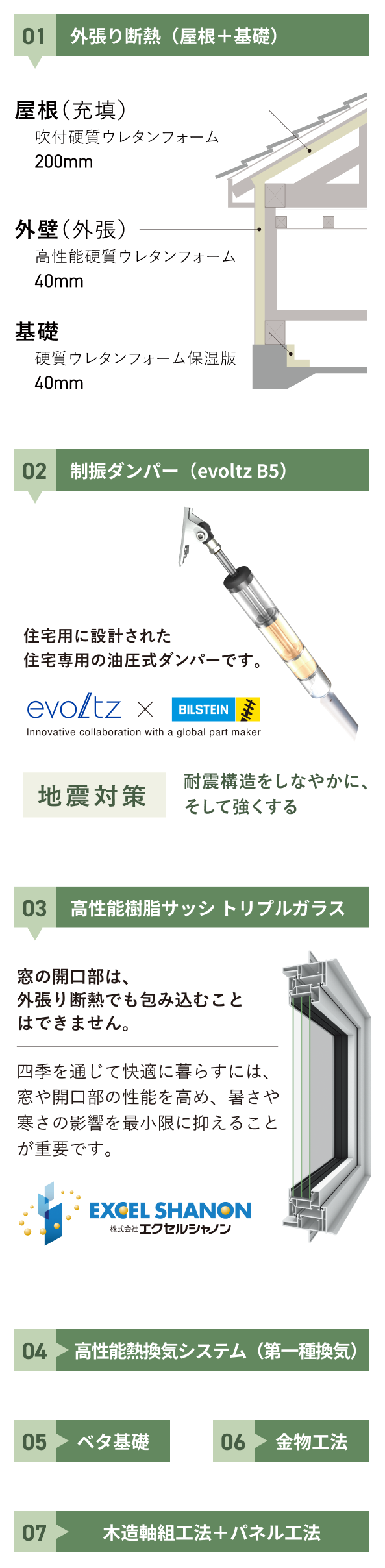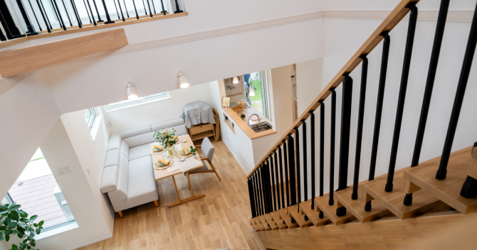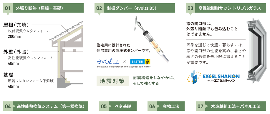 建物を外側から隙間なく覆う「外張り断熱工法」により、家中の温度が安定し外気の影響も受けにくくなります。