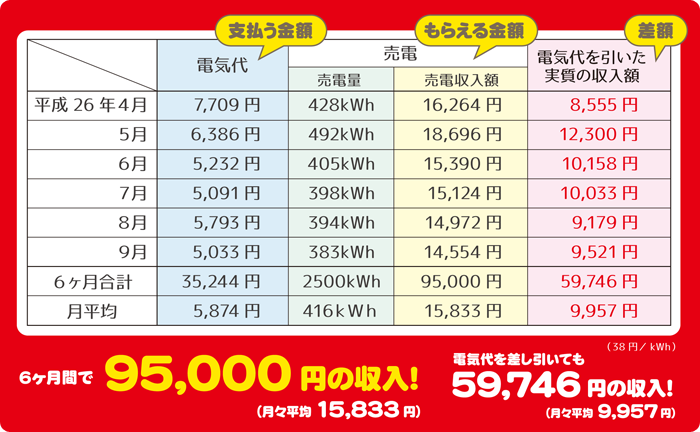 電気代の収支を考えると光熱水費ゼロが実現されて、かつ還元されているのが嬉しいです。