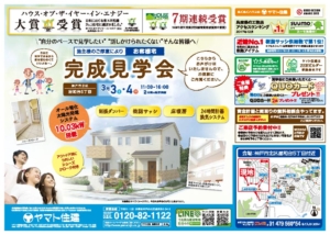 お施主様のご厚意により、2週連!お客様宅「完成見学会」を開催いたします!