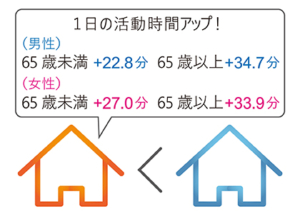 冬暖かく夏涼しい室温環境での1日活動時間量が増加し、筋力アップや脳への刺激につながります。