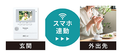 外出中でもインターフォンとの連動で、お子さまの様子や来客をいつでもスマホで確認できます。すぐに通知が届くので、外出先でも安心です。