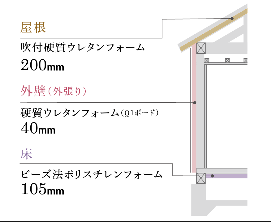 UA値0.25(W/㎡・k)の最高ランクの断熱性能