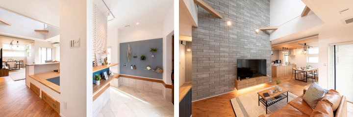 土間ギャラリーとカウンター付きの和室が特徴的なモデルハウス。ギャラリースペースは家族の思い出の写真や子どもの絵をディスプレイできる憩いの場。吹き抜けで明るく開放感のある24.5帖の広々としたリビング。洗面室に設けたファミリークローゼットは帰宅時やお出かけ時の動線に配慮しました。家族が心地よく暮らしのアイデアが満載です。