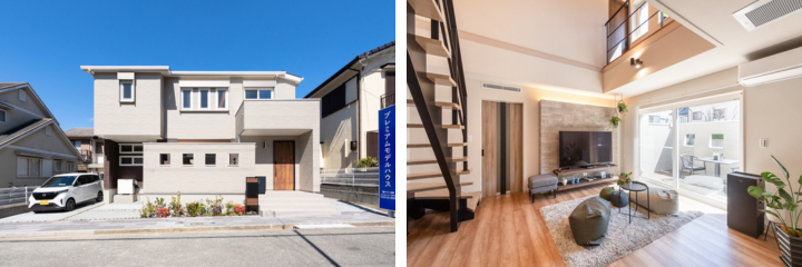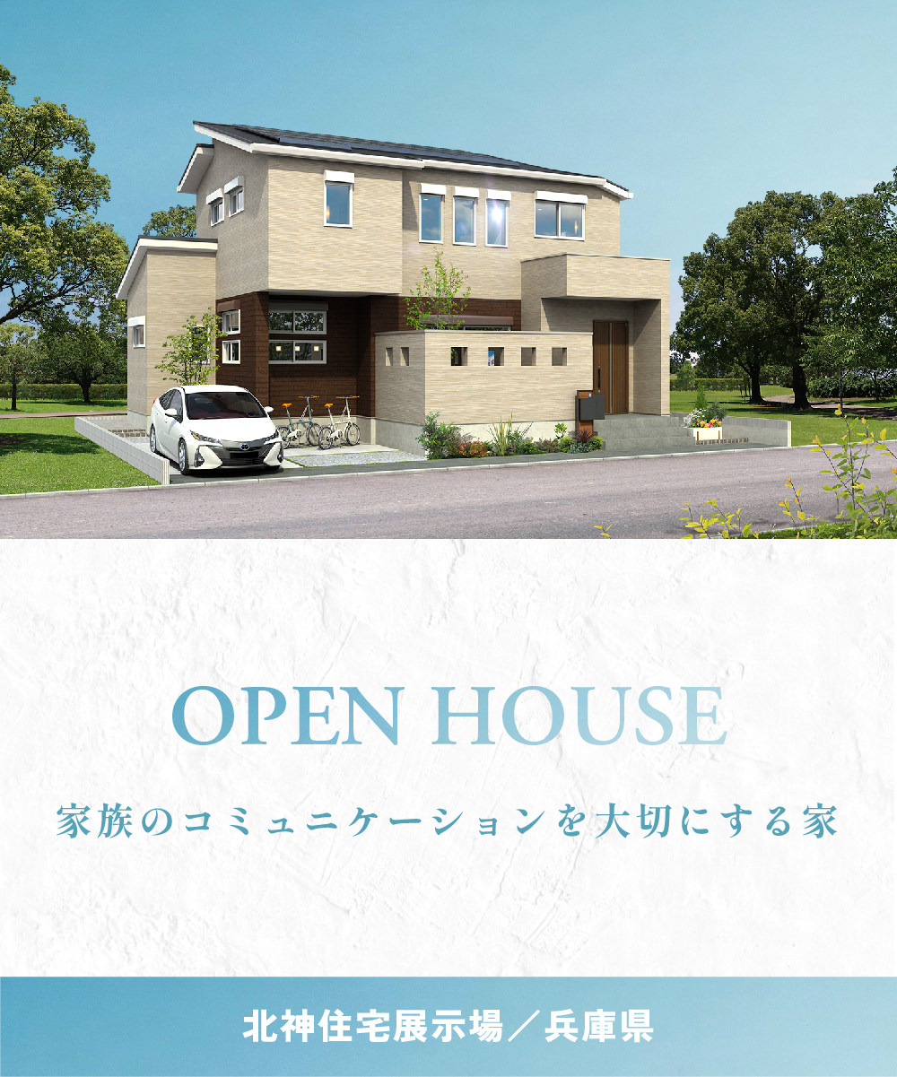 吹き抜けで明るいリビング、スケルトン階段が心地よさをつくり出します。小上がりの和室で遊ぶ子どもを見守りながら料理のできるキッチン。ソファーダイニングで食後におしゃべりをしたり、家族が仲良く暮らすアイディアが満載です。太陽光発電・V2Hで自然にやさしく経済的な暮らしをご提案。室内空気循環システム(エアフローシステム)を採用したモデルハウスです。
