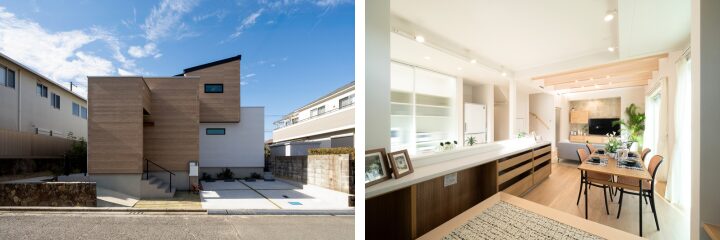 2色の外壁が映えるモダンなデザインが魅力のモデルハウス。光に満ちた開放的な吹き抜けと、広々とした大空間リビングが贅沢な住まいです。キッチン周りのカウンターや小上がり、2カ所のWICL(ウォークインクローゼット)など、暮らしに便利な工夫が随所に散りばめられ、使い勝手抜群。さらに、約7.50kWの太陽光パネルを搭載しており、家計に優しいエコな生活が可能です。エコエアfineによる一年を通じた快適な空調で、心地よい暮らしをご体感ください。