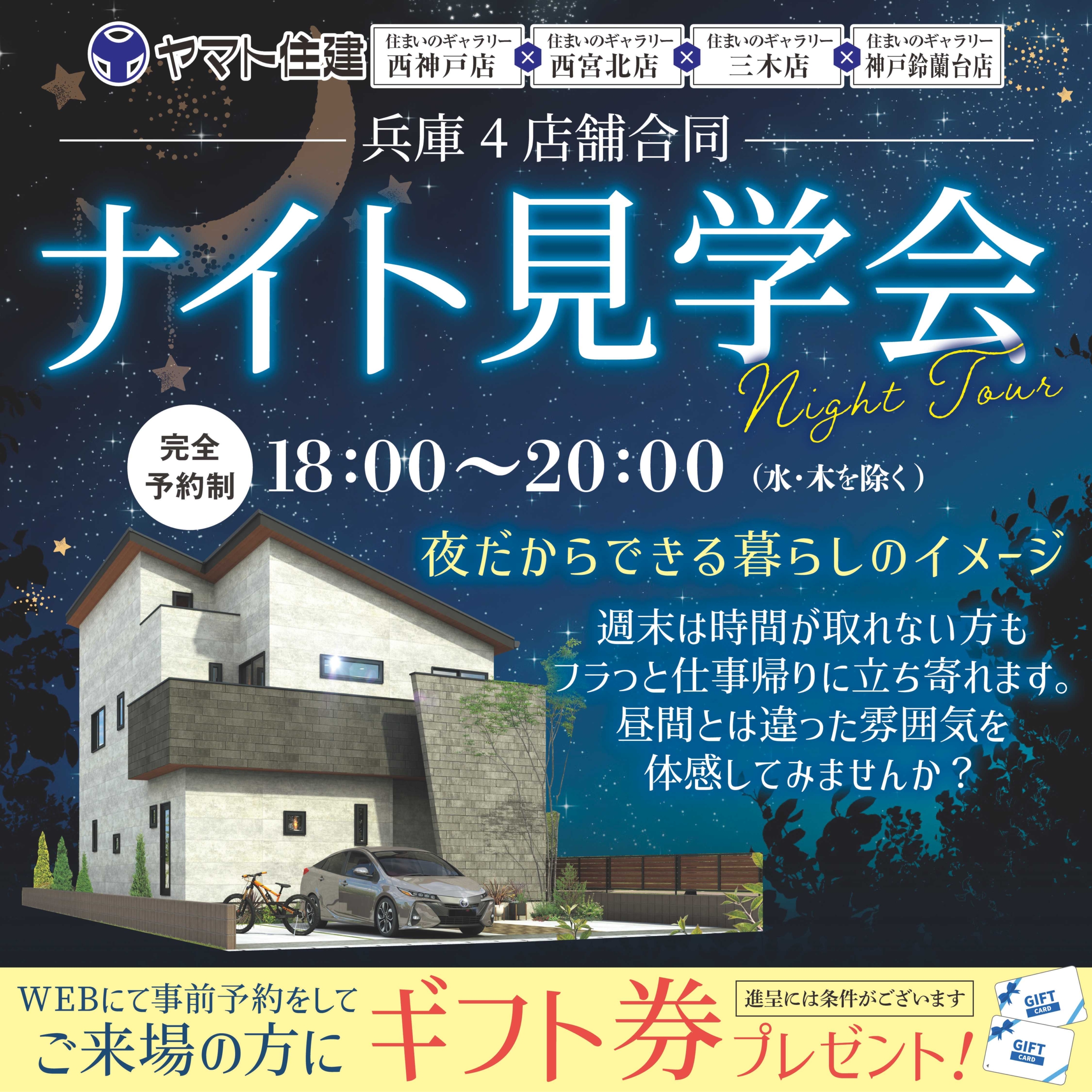注文住宅ならヤマト住建(TOP) > イベント・商品・セミナー情報 > 全国 > 近畿エリア > 兵庫県 > 住まいのギャラリー西宮北店 > <兵庫4店舗合同>ナイト見学会開催!(西神戸店・西宮北店・三木店・神戸鈴蘭台店)