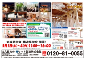 完全予約制!兵庫県加古川市にてお客様宅「完成見学会&構造見学会」を開催いたします!