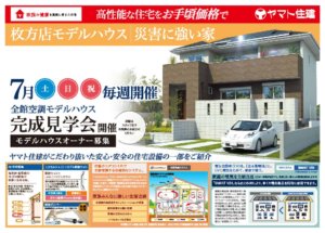 <完全予約制>枚方モデルハウス『災害に強い家』「大見学会」を開催いたします!