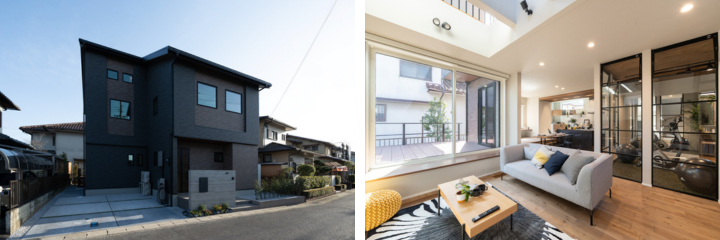 夫婦が永く住み続けられるストレスフリーの家をコンセプトにしたモデルハウス。吹き抜けやステップアップ大開口により光や風を取り入れた自宅リゾートが味わえます。また、1階にトレーニング室を設けて身体も動かせる空間を実現し、2.5階には隠し部屋を2部屋も設置。太陽光発電システムを7.5kW搭載し、家計と地球にやさしい住宅を実現しました。