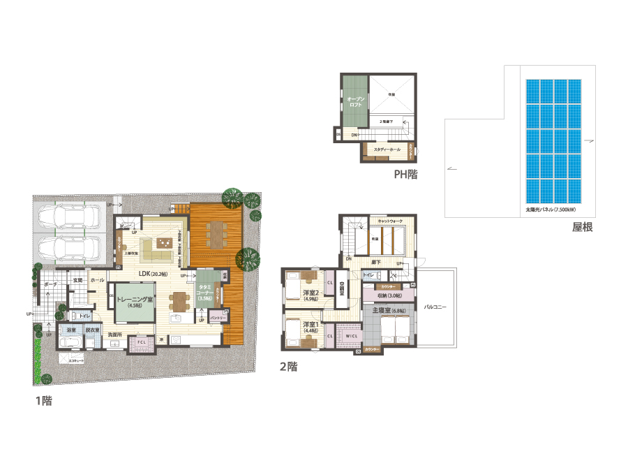 間取り :3LDK+トレーニングルーム+スタディーホール+オープンロフト+スカイバルコニー