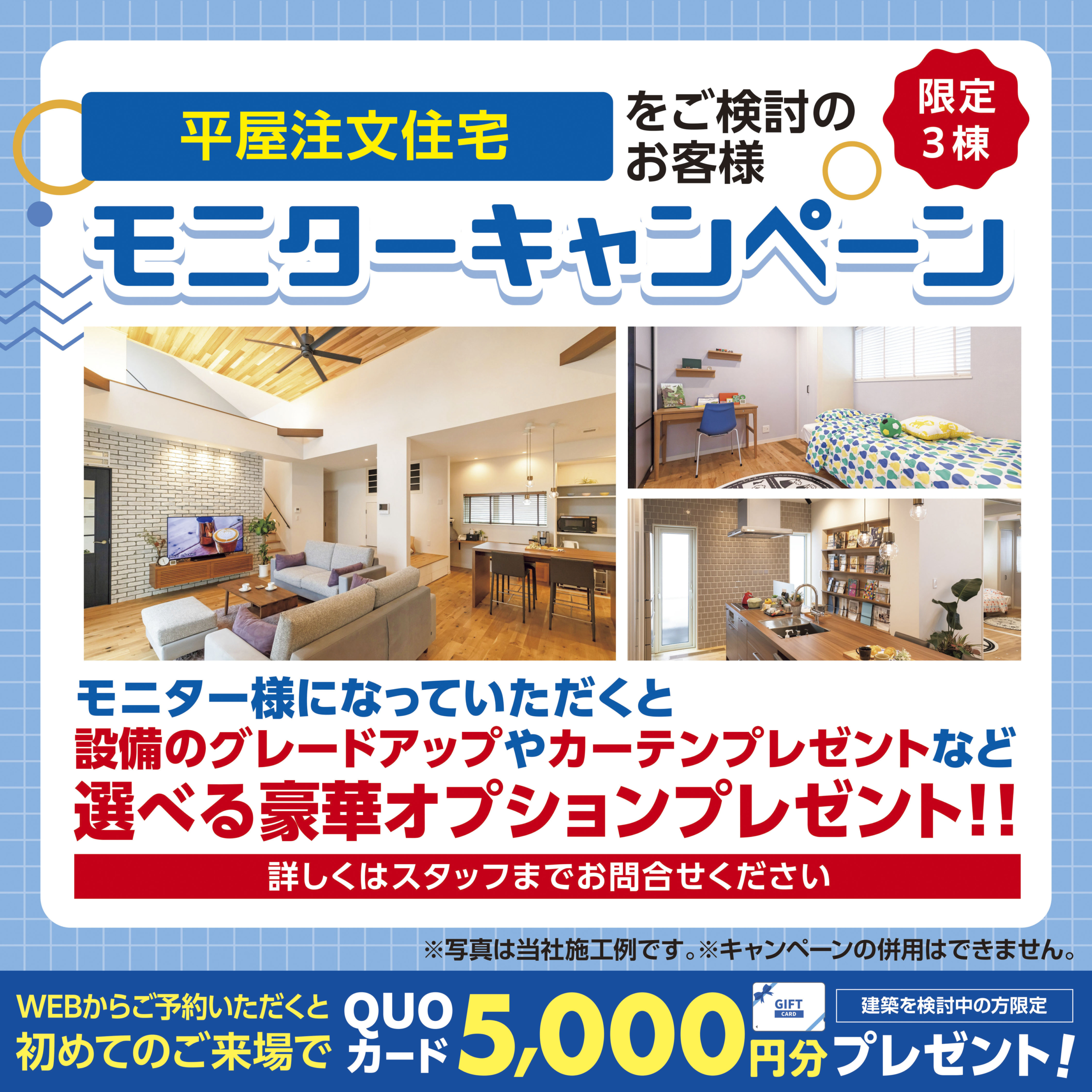 平屋住宅をご検討の方へ向けた特別モニターキャンペーンです!