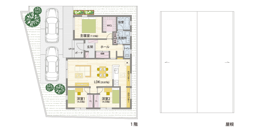 広々とした20帖を越えるLDK、家族の会話が弾むオープンなキッチン。動線がラクになる平屋の住まいは子どもが独立したあとも夫婦がゆったりと暮らせます。食材や生活用品を収納できる広めのパントリー、細々したものを整理できる玄関ホールの収納スペースなど、コンパクトでありながら収納にこだわりました。平屋ならではの暮らし提案が満載です。