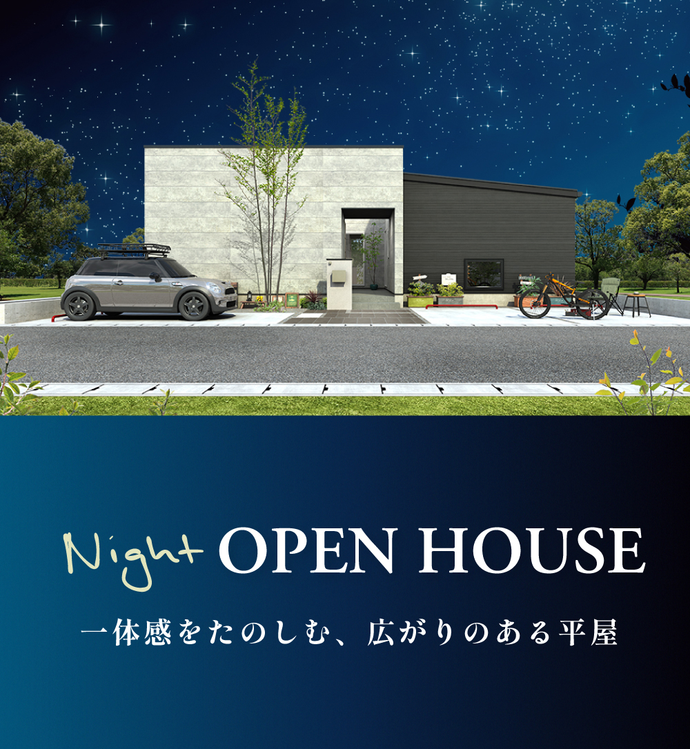 2色に貼り分けた外壁がモダンな印象のモデルハウス。勾配天井が開放感あるLDKや、WICLつきの主寝室、2つの洋室など空間が各所に広がる平屋の住まいです。太陽光パネルを約6.00kw搭載しており、家計に優しい暮らしを実現できます。また、全館空調システム「エコエアファイン」を搭載しており年中快適にお過ごしいただけます。