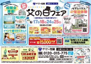 イベント 2023年6月17日(土)18日(日)24日(土)25日(日) 10:00~17:00 <完全予約制>「父の日フェア」開催!(上尾ショールーム) 【上尾ショールーム】 「父の日フェア」を開催! WEBにて事前予約をしてご来店の方に、ギフト券15,000円… 開催:上尾ショールーム 詳しくはこちら