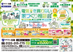 イベント 2023年7月1日(土)2日(日)8日(土)9日(日) 10:00~17:00 <完全予約制>「電気を買わない家づくり相談会」開催!(上尾ショールーム) 【上尾ショールーム】 「電気を買わない家づくり相談会」を開催! WEBにて事前予約をしてご来店の方に、ギフト券15,000円…… 開催:上尾ショールーム 詳しくはこちら