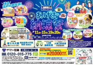 イベント 2023年8月11日(土)~15日(日)19日(土)20日(日) 10:00~17:00 <完全予約制>「あげお納涼祭」開催!(上尾ショールーム) 【上尾ショールーム】 「あげお納涼祭」を開催! WEBにて事前予約をしてご来店の方に、ギフト券20,000円…… 開催:上尾ショールーム 詳しくはこちら