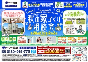イベント 2023年8月26日(土)27日(日)9月2日(土)3日(日) 10:00~17:00 <参加無料・完全予約制>「秋の家づくり相談会」開催!(上尾ショールーム) 【上尾ショールーム】 「秋の家づくり相談会」を開催! WEBにて事前予約をしてご来店の方に、ギフト券20,000円…… 開催:上尾ショールーム 詳しくはこちら