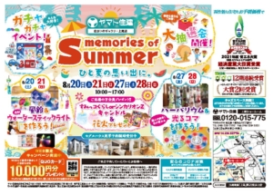 イベント 2022年8月20日(土)21日(日)27日(土)28日(日)10:00~17:00 「メモリー・オブ・サマーイベント」開催!(上尾ショールーム) 【上尾ショールーム】 「メモリー・オブ・サマーイベント」を開催いたします! WEBにて事前予約をしてご来店の方に、QUOカード10,000円分…… 開催:上尾ショールーム 詳しくはこちら