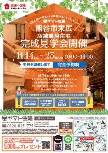 完全予約制!埼玉県熊谷市末広付近にて店舗兼用住宅「完成見学会」を開催いたします!