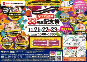 完全予約制!参加無料!ヤマト住建33周年「記念祭」日頃の感謝を込めてイベントを開催いたします!