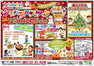 『クリスマスフェスタ』を開催いたします!家族みんなで楽しめる無料のイベントが盛りだくさん!