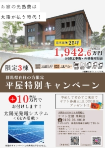 イベント ~2024年3月末まで 群馬県在住の方限定「平屋特別キャンペーン」実施!(伊勢崎店) 【ヤマトギャラリー伊勢崎店】 群馬県在住の方限定!「平屋特別キャンペーン」を実施いたします! <限定3棟>特別価格1,942.6万円~…… 開催:ヤマトギャラリー伊勢崎店 詳しくはこちら