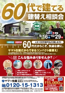 イベント 2023年9月16日(土)~10月29日(日) 「60代で建てる建替え相談会」開催!(姫路店) 【住まいのギャラリー姫路店】 「60代で建てる建替え相談会」開催! 人生100年時代を楽しもう!60代だからできるコンパクト建替え…… 開催:住まいのギャラリー姫路店 詳しくはこちら