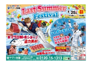 イベント 2024年8月25日(日) 「Last Summer Festival」開催!(姫路店) 【住まいのギャラリー姫路店】 Last Summer Festival! 迫力満点!本マグロ解体ショー!&バブリン先生の<シャボン玉ショー>&大きなシャボン玉を作ろう体験♪…… 開催:住まいのギャラリー姫路店 詳しくはこちら