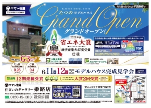 「たつのモデルハウス」モデルハウス「完成見学会」&兵庫県姫路市砥堀付近にてお客様宅「完成見学会」を開催いたします!