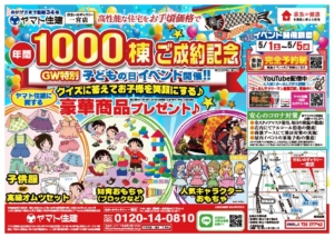 完全予約制&参加無料!年間1000棟ご成約記念「GW特別子どもの日イベント」を開催いたします!