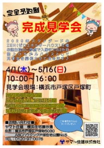 完全予約制!お施主様のご厚意により、横浜県戸塚区にてお客様宅「完成見学会」を開催いたします!
