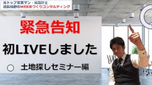店長磯野 “初”の「YouTube LIVE」配信!テーマは「土地探しセミナー」