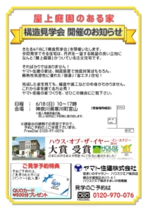 神奈川県高座郡寒川町宮山にてお施主様のご厚意により、「構造見学会」を開催いたします!
