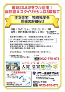 お施主様のご厚意により、神奈川県横浜市緑区白山4丁目にて完成見学会を開催いたします!