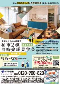 2023年10月16日(月)~10月22日(日) 「我孫子市にて完成見学会」開催!(船橋店・柏店) 【住まいのギャラリー船橋店/柏店】 「我孫子市にて完成見学会」開催! それぞれのお悩みや条件に合わせて相談できます…… 開催:住まいのギャラリー船橋店/柏店 詳しくはこちら