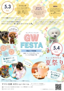 イベント 2025年5月3日(土)4日(日) <完全予約制>「ゴールデンウィークフェスタ」開催!(川口ショールーム) 【ヤマトギャラリー川口ショールーム】 「ゴールデンウィークフェスタ」開催! Dog Salon Maroubraとのコラボや少し早めの夏祭り…… 開催:ヤマトギャラリー川口ショールーム 詳しくはこちら
