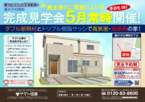 <完全予約制>お施主様のご厚意により、兵庫県西宮市山口町上山口4丁目付近&神戸市北区鹿の子台南町6丁目付近にて、2現場同時!お客様宅「完成見学会」を開催いたします!