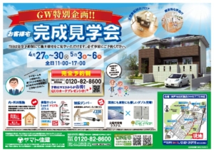 GW特別企画!お施主様のご厚意により、神戸市北区にて「完成見学会」を開催いたします♪(完全予約制)