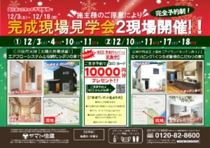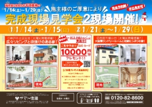 施主様のご厚意により、お客様宅「完成見学会」を2現場で開催いたします!
